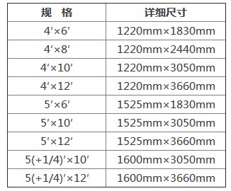 抗倍特板由於采用多層紙疊壓的工藝製作,所以板材厚度在廠家這邊並沒有太過嚴格的規定,基本可以按照成年午夜视频的需求來確定,市場上一般的抗倍特板厚度在1.6mm-25mm之間,如果有特殊要求需要在此基礎上更薄或者更厚也無不可,抗倍特板的大小尺寸由於受機器限製主要有一下九種大小尺寸可供選擇: